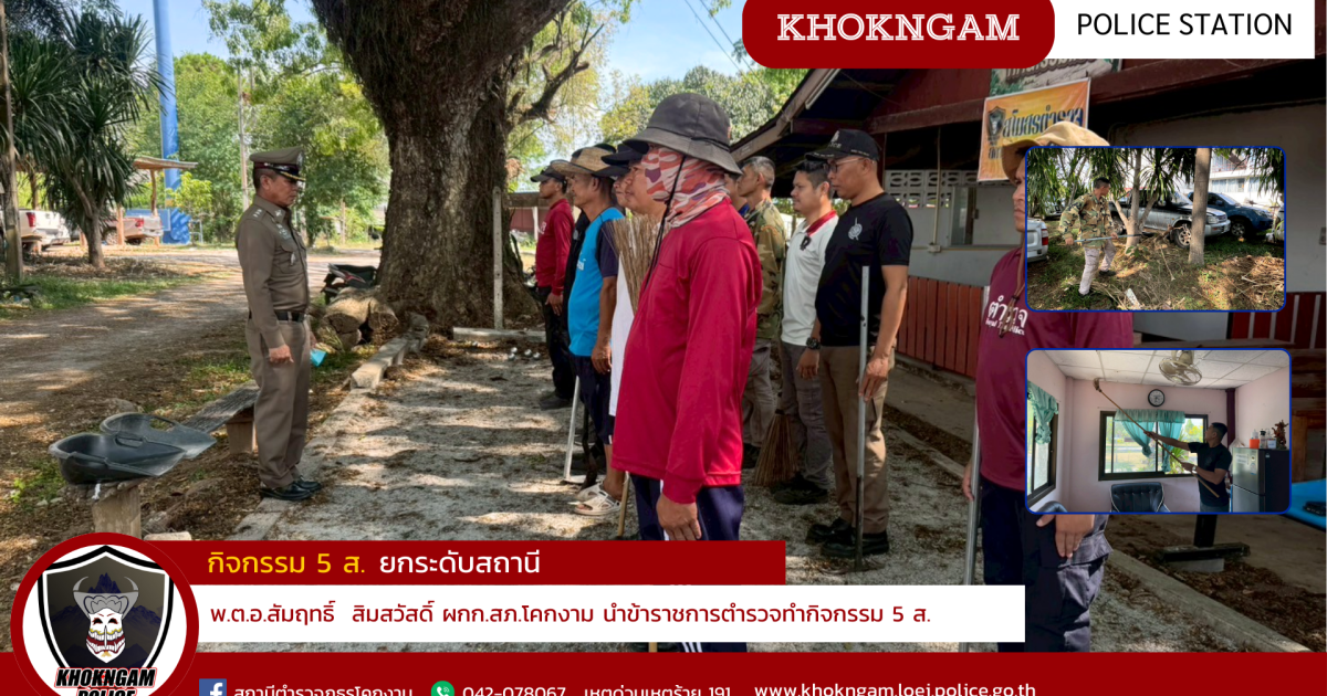 เมื่อวันที่ 24 เมษายน 2568 ที่ผ่านมา พ.ต.อ.สัมฤทธิ์ สิมสวัสดิ์ ผกก.สภ.โคกงาม มอบหมาย พ.ต.ท.สมพงษ์ ดอนอินทร์ สวป.สภ.โคกงามนำข้าราชการตำรวจ 5 ส. ทำความสะอาดรอบสถานี และตามแผนกงาน ได้แก่ งานอำนวยการ งานป้องกันปราบปราม งานสืบสวน งานอบสวน และงานจราจร เพื่อยกระดับสถานี และเตรียมความพร้อมต้อนรับคณะกรรมการตรวจราชการประจำปีงบ ประมาณ2568