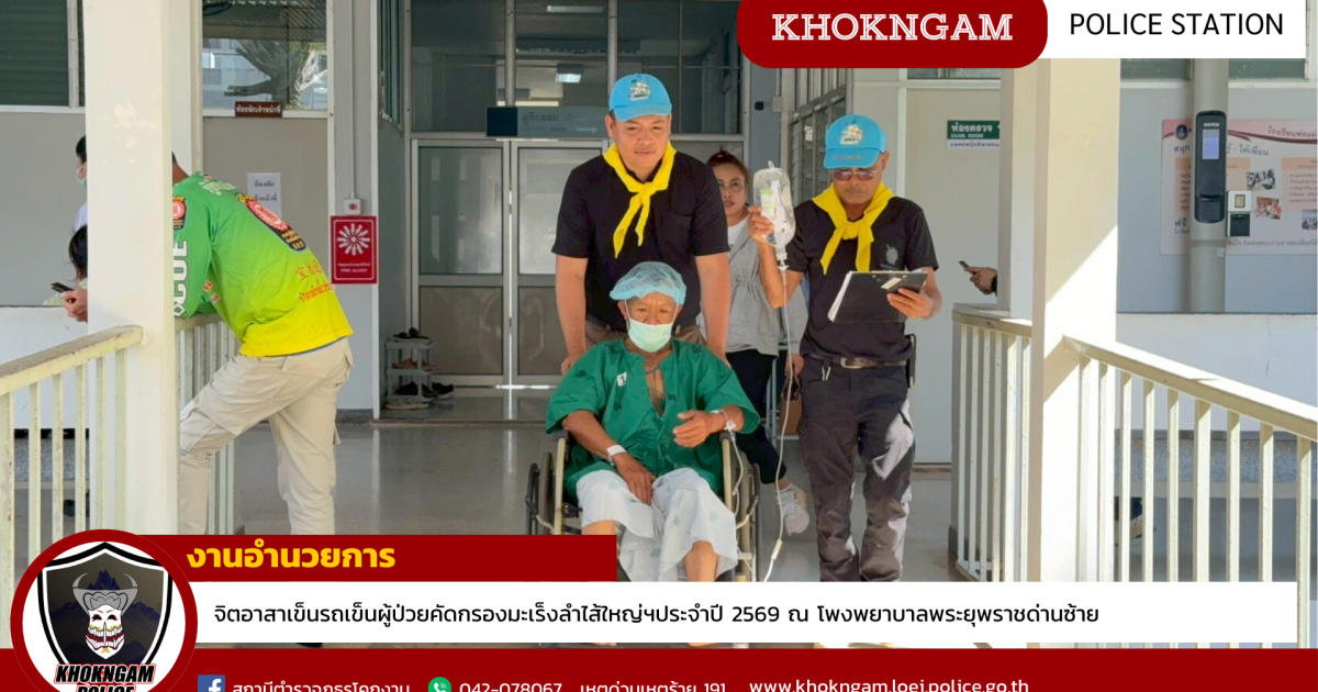 ร.ต.อ.จีระศักดิ์ สิทธิสาร รอง สวปฯ นำข้าราชการตำรวจในสังกัด เป็นจิตอาสาเข็นรถเข็นผู้ป่วย ตรวจมะเร็งลำไส้ฯ ซึ่งเป็นกิจกรรมคัดกรองมะเร็งลำไส้ใหญ่ฯประจำปี 2569 ณ โพงพยาบาลพระยุพราชด่านซ้าย