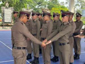 นำโดย พ.ต.อ. ชาญศิลป์ นาสูงชน รอง ผบก.ภ.จว.เลย (กลุ่มงานสอบสวน) ประธานในพิธี ร่วมด้วย พ.ต.อ.ณธีพัฒน์ จิรัฐวรโชติ ผกก.สภ.ด่านซ้าย, พ.ต.อ.วีระพัน สมสุข ผกก.สภ.ภูเรือ, พ.ต.อ. พิษณุวัชร์ ใจการ ผกก.สภ.นาแห้ว, พ.ต.ท.วรพจน์ วัฒนสุวรรณ รอง ผกก (ป.) สภ.โคกงาม รักษาราชการแทนผกก.สภ.โคกงาม, คณะกรรมการ ภ.จว.เลย,กก.สส.ภ.จว.เลย, ครูฝึกแต่ละสถานี และข้าราชการตำรวจ