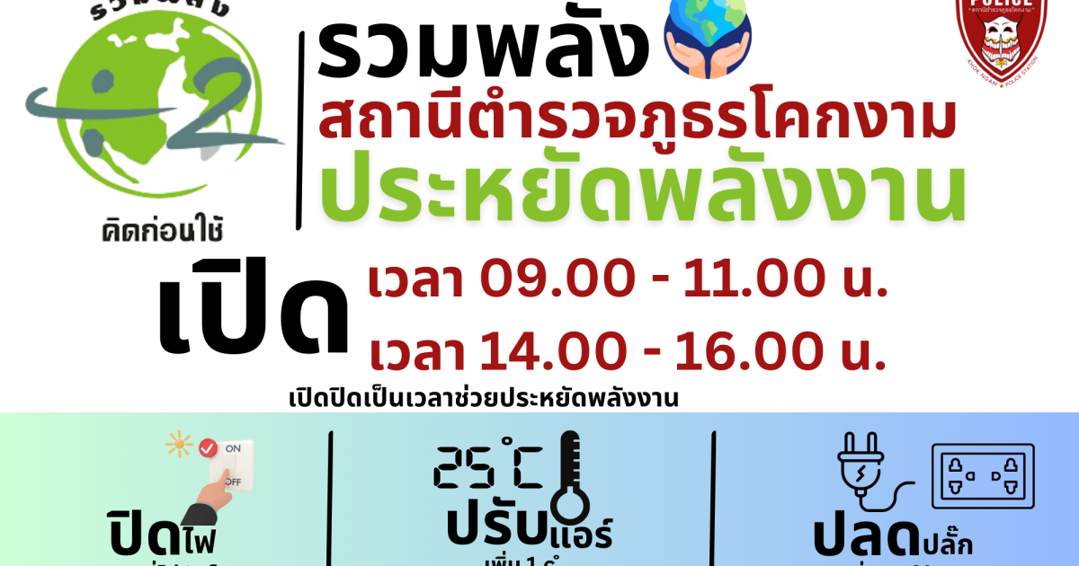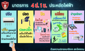 สภ.โคก โคกงามประชาชาสัมพันธ์ เชิญชวนประชาชน “รวมพลังคิดก่อนใช้ รวมพลังประหยัดพลังงาน” โดยใช้หลัก 4 ป. 1 บ.