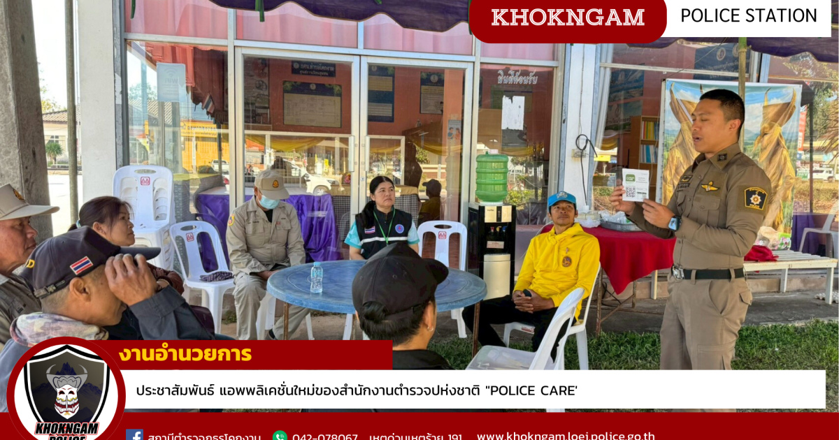 ส.ต.ท.สหรัฐ สวัสดิ์ประวิทย์ ผบ.หมู่ (คตส.) สภ.โคกงาม ประชาสัมพันธ์ แอพพลิเคชั่นใหม่ของสำนักงานตำรวจปห่งชาติ “POLICE CARE’ แอพพลิเคชันตำรวจห่วงใยประชาชน ให้แก่เจ้าหน้าที่รัฐ เพื่อนำไปเผยแพร่ ประชาสัมพันธ์ต่อในชุมชนตนเอง ตัวแอปพลิเคชั่นสามารถตรวจสอบข้อมูลคดีต่างๆ ค้นหาโรงพักใกล้เคียง และบอกขั้นตอนเตรียมการแจ้งความ เพื่ออำนวยความสะดวกแก่ประชาชน