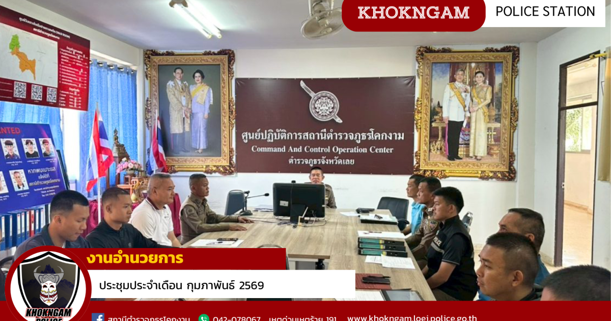 พ.ต.อ.สัมฤทธิ์ สิมสวัสดิ์ ผกก.สภ.โคกงาม พร้อมด้วยข้าราชการตำรวจในสังกัด ประชุมประจำเดือนกุมภาพันธ์ 2569 กำชับข้าราชการตำรวจให้เตรียมความพร้อมสำหรับรับการตรวจราชการ ประจำปี 2569 ในวันที่ 25 กุมภาพันธ์ 2569