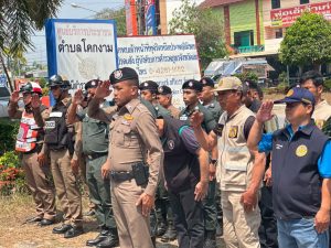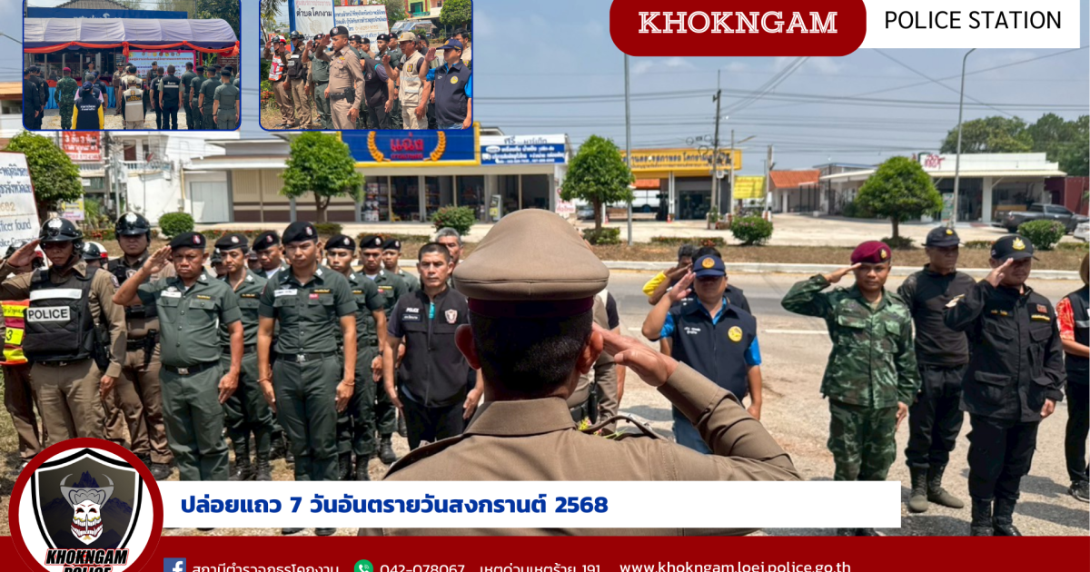พ.ต.อ.สัมฤทธิ์ สิมสวัสดิ์ ผกก.สภ.โคกงาม ปล่อยแถว 7 วันอันตราย ห้วงเทศกาลสงกรานต์ประจำปี 2568 นำโดย พ.ต.ท.สมพงษ์ ดอนอินทร์ สวป.สภ.โคกงาม พร้อมชุดสายตรวจ จราจร หน่วยเคลื่อนที่เร็ว สภ.โคกงาม ฝ่ายการปกครอง ตชด.247 ชุดเฉพาะกิจจิตวิทยาที่ 230 ฝ่ายอาสาสมัครป้องกันภัยพลเรือน (อปภร.) และอาสาสมัครสาธารณะสุขประจำหมู่บ้าน (อสม.) ณ ศูนย์ปฏิบัติการป้องกันภัย และลดอุบัติเหตุทางถนนช่วงเทศกาลสงกรานต์ 2568 อบต.โคกงาม