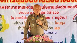 ร่วมกับนายสนอง โสประดิษฐ์ ประธาน กต.ตร.(ประธานในพิธี) นายฤทธิพร พรหมมาวัน กำนันตำบลโพนสูง น.ส.ยุภาพร ทรงภักดี ผอ.โรงเรียนบ้านโพนสูง นายประสิทธิ์ โพธิ์ศรี ผู้ใหญ่บ้านบ้านโพนสูง นายสมชายการส รองนายก อบต.โพนสูง ร่วมพิธีโครงการชุมชนบำบัดอย่างยั่งยืน ในพื้นที่แพร่ระบาดยาเสพติดตามนโยบายเร่งด่วนของรัฐบาล จำนวน ๑,๔๘๓ สถานีตำรวจ (๑ สถานีตำรวจ / ๑ ชุมชน / หมู่บ้าน) ณ หมู่บ้าน โพนสูง หมู่ ๑ ตำบลโพนสูง อำเภอด่านซ้าย จังหวัดเลย พร้อมร่วมกันลงนามเพื่อป้องกันและปราบปรามยาเสพติดในพื้น นำความสงบสุขคืนสู่สังคม