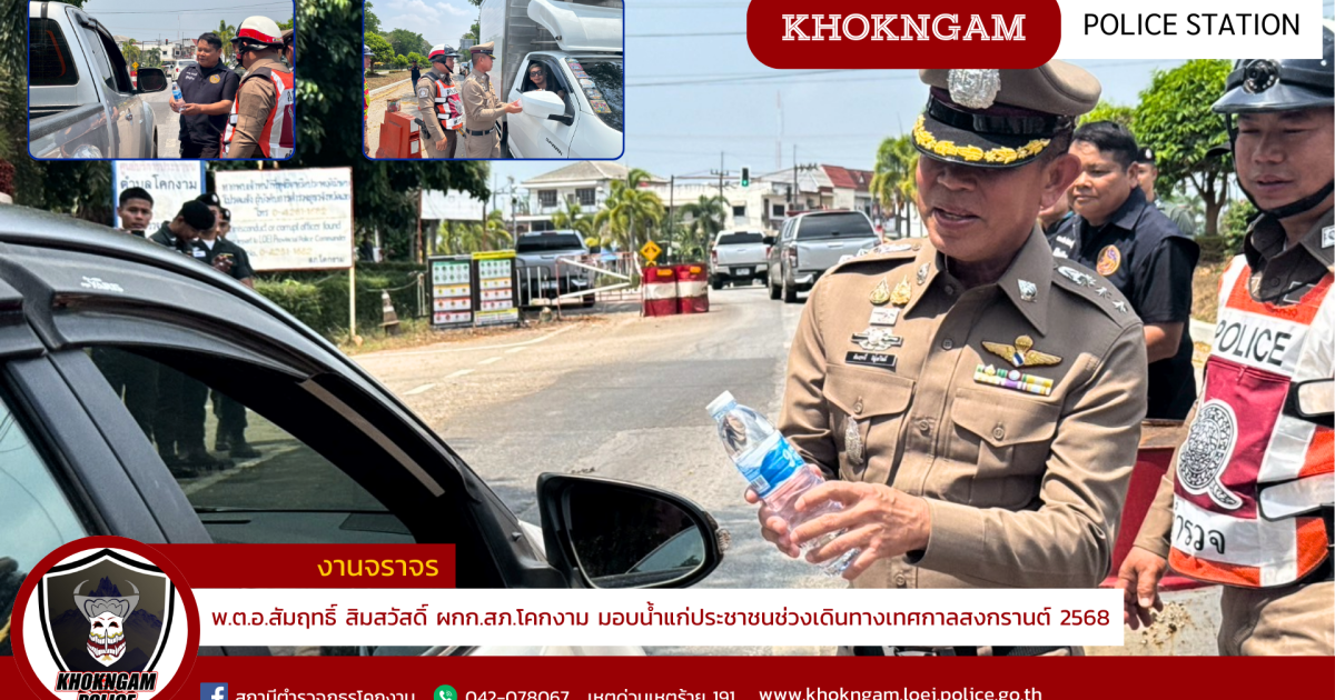 พ.ต.อ.สัมฤทธิ์ สิมสวัสดิ์ ผกก.สภ.โคกงาม มอบน้ำดื่มแก่ประชาชน เพื่อเป็นขวัญและกำลังใจแก่ผู้ที่เดินทางช่วงเทศกาลสงกรานต์ 2568 ที่ใช้เส้นทางถนน โคกงาม – ภูเรือ