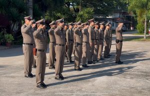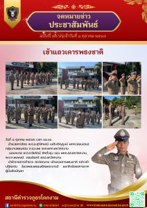 นำข้าราชการตำรวจ สภ.โคกงาม เข้าแถวเคารพธงชาติ กล่าวคำปฏิญาณ ร้องเพลงสรรเสริญพระบารมี และฟังข้อราชการจาก ผู้บังคับบัญชา