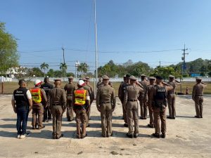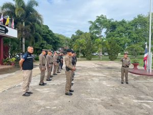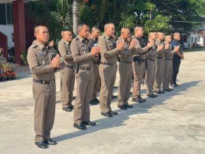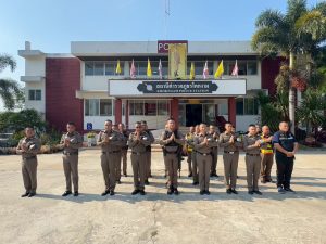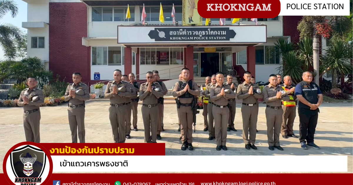 พ.ต.อ.สัมฤทธิ์ สิมสวัสดิ์ ผกก.สภ.โคกงาม นำข้าราชการตำรวจเข้าแถวเคารพธงชาติ กล่าวคำปฏิญาณกล่าวคำอุดมคติตำรวจ และมอบข้อราชการตำรวจ กำชับให้ปฏิบัติหน้าที่ภายใต้กฎหมายอย่างเคร่งครัด