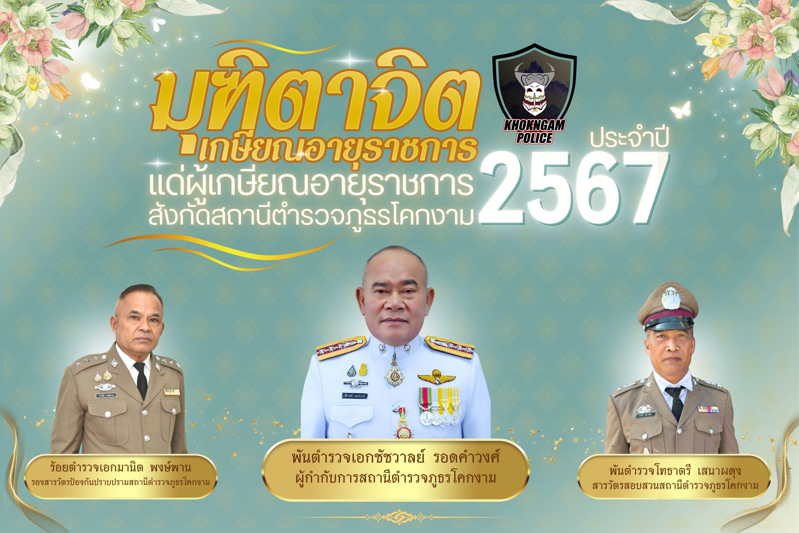 สถานีตำรวจภูธรโคกงาม ขอแสดงความยินดีแด่ผู้เกษียณอายุราชการ สภ.โคกงาม ได้แก่ พ.ต.อ.ชัชวาลย์  รอดคำวงศ
