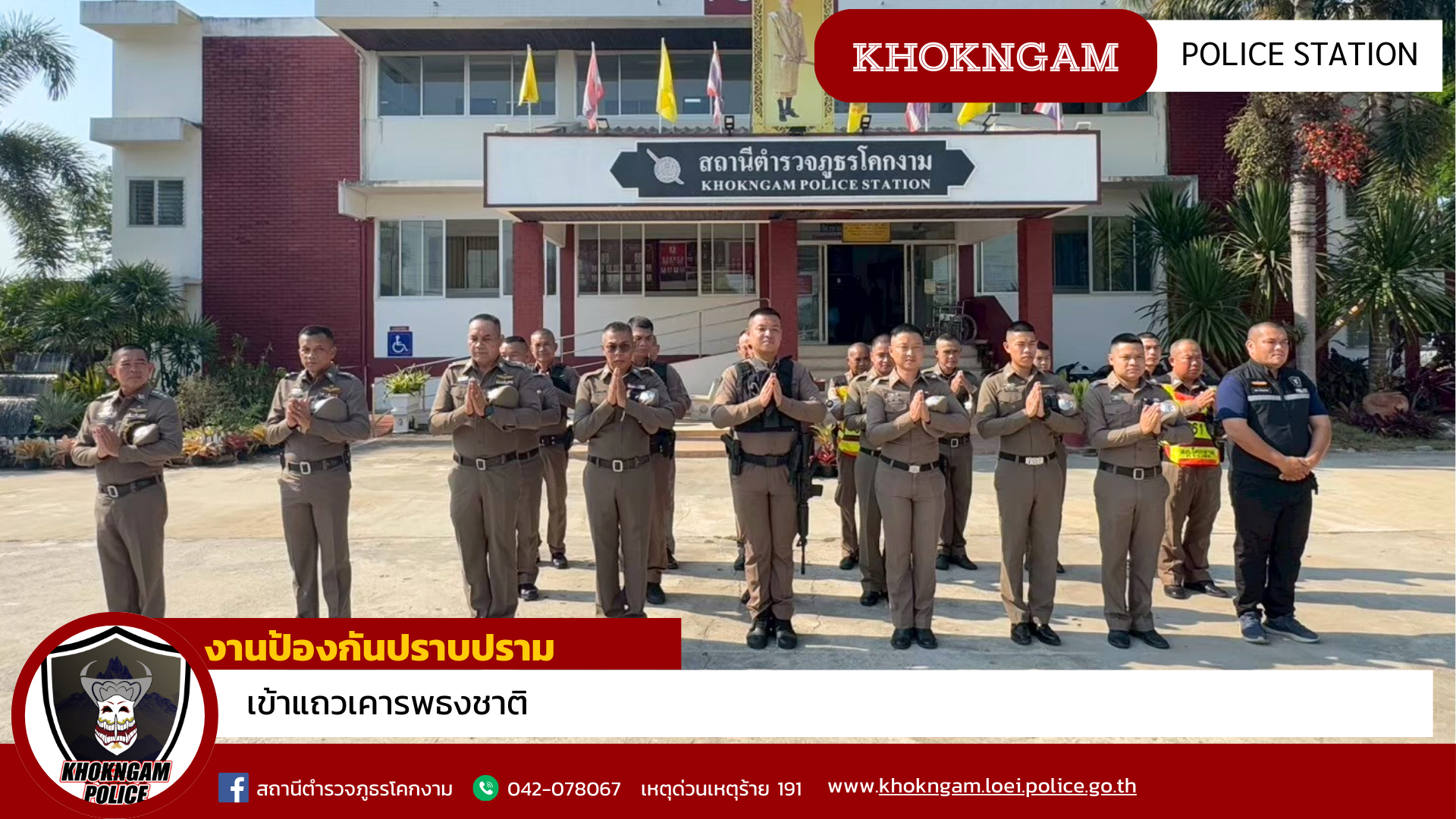 พ.ต.อ.สัมฤทธิ์ สิมสวัสดิ์ ผกก.สภ.โคกงาม นำข้าราชการตำรวจเข้าแถวเคารพธงชาติ กล่าวคำปฏิญาณกล่าวคำอุดมค