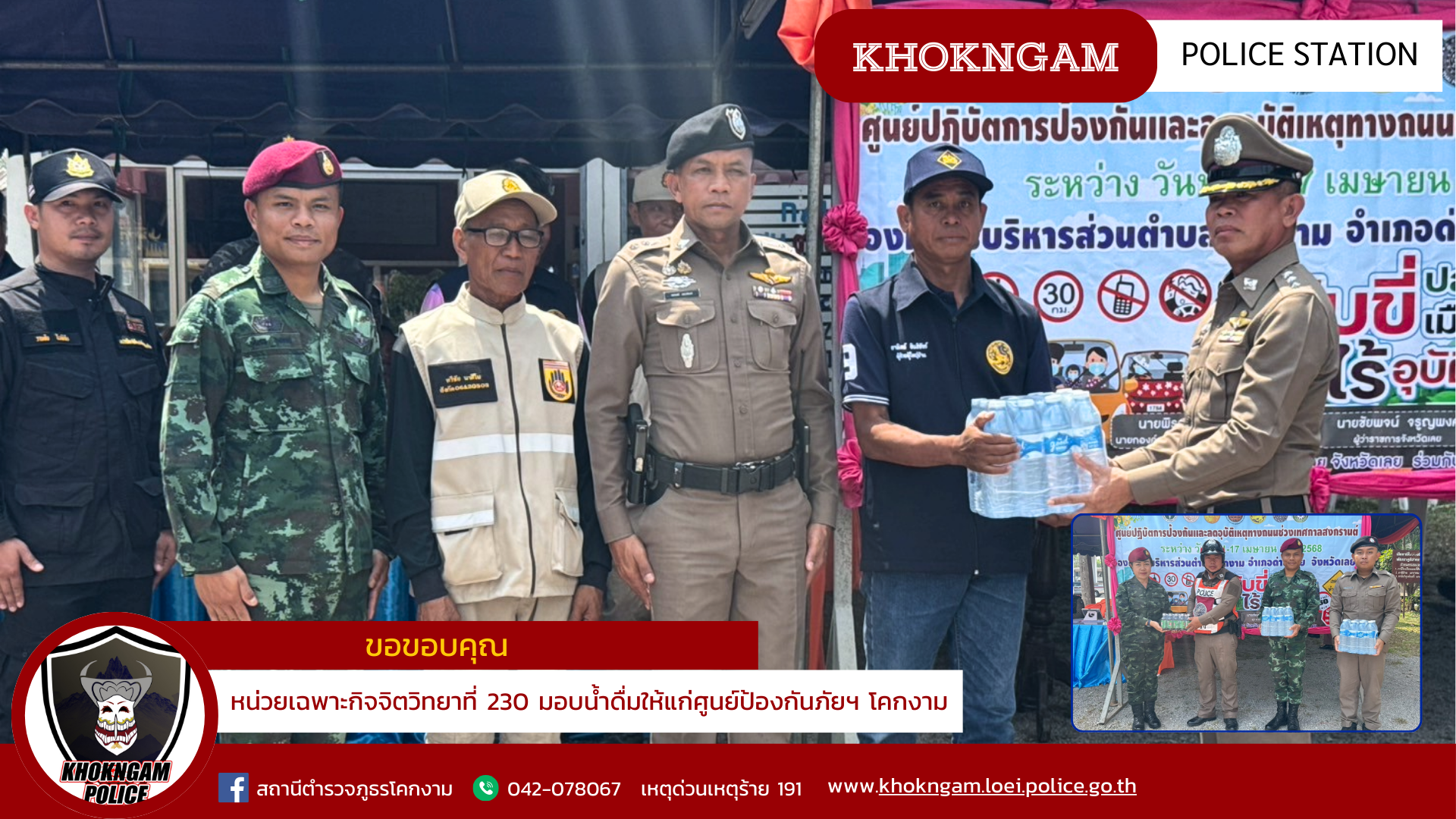 หน่วยเฉพาะกิจจิตวิทยาที่ 230 มอบน้ำดื่มแก่ศูนย์บริการประชาชนช่วงสงกรานต์ สภ.โคกงาม